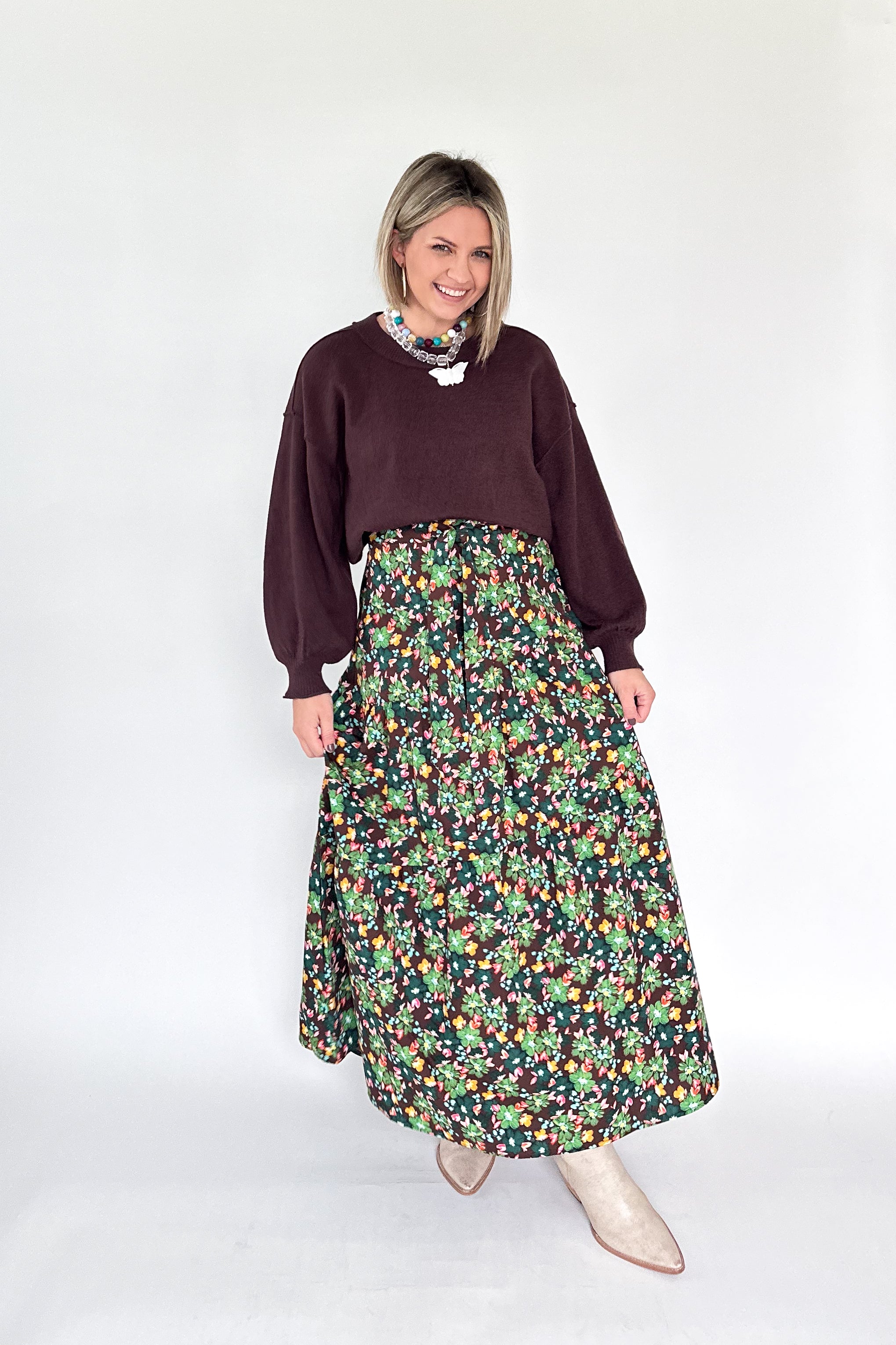 The Petal Tie Maxi Skirt By Karlie