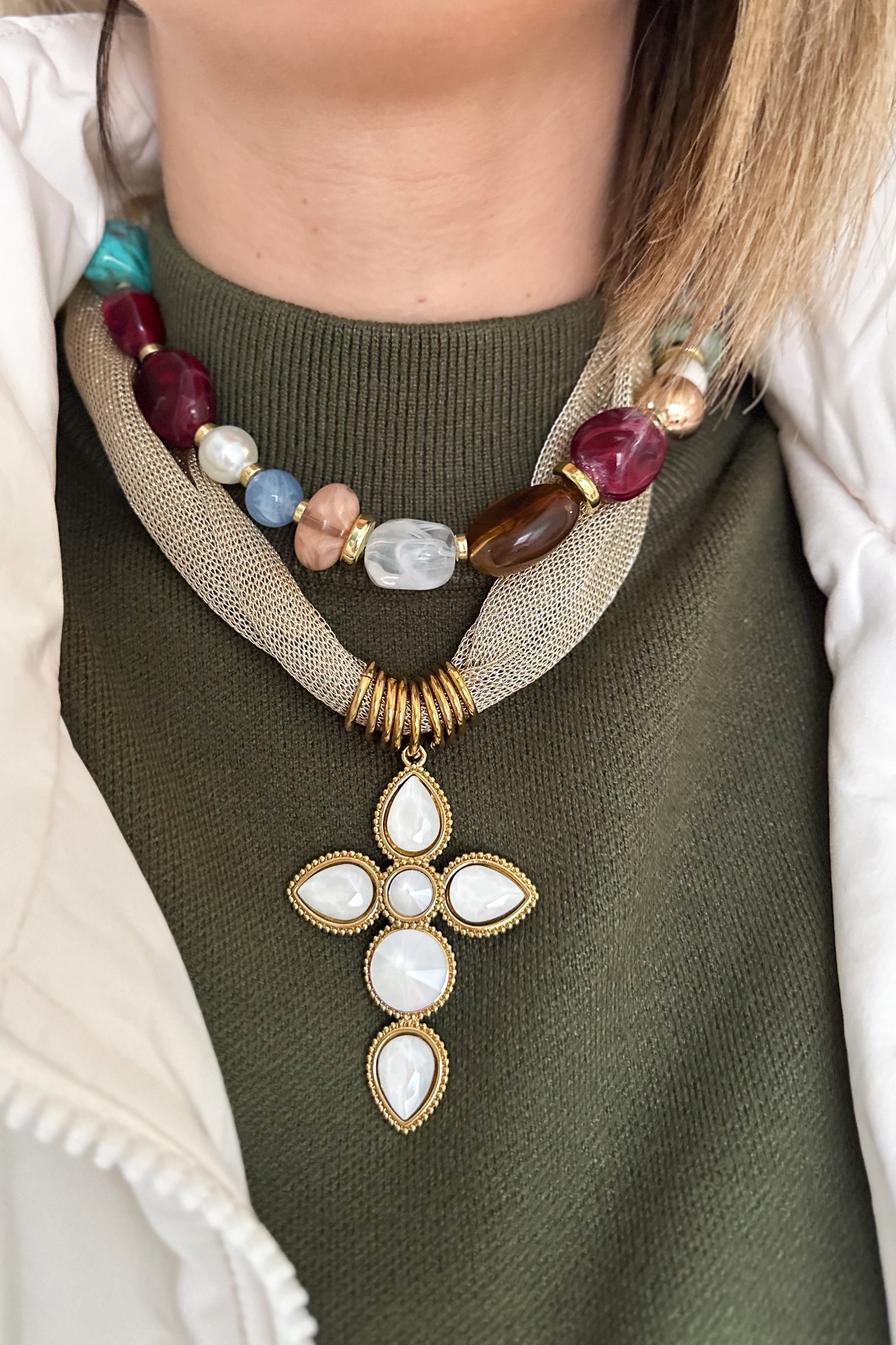 White Cross Necklace