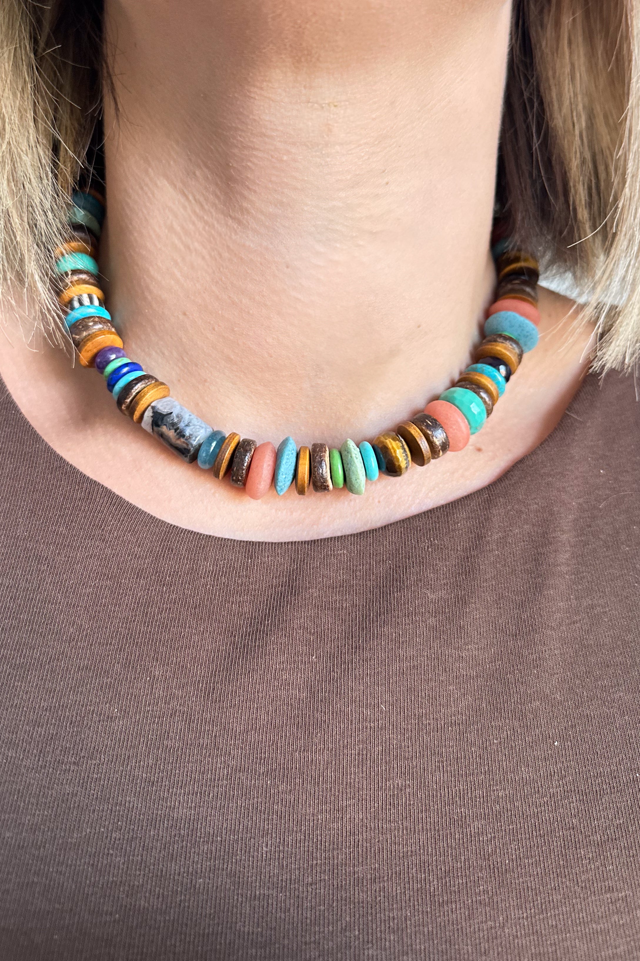 Wood Gemstone Mix Necklace