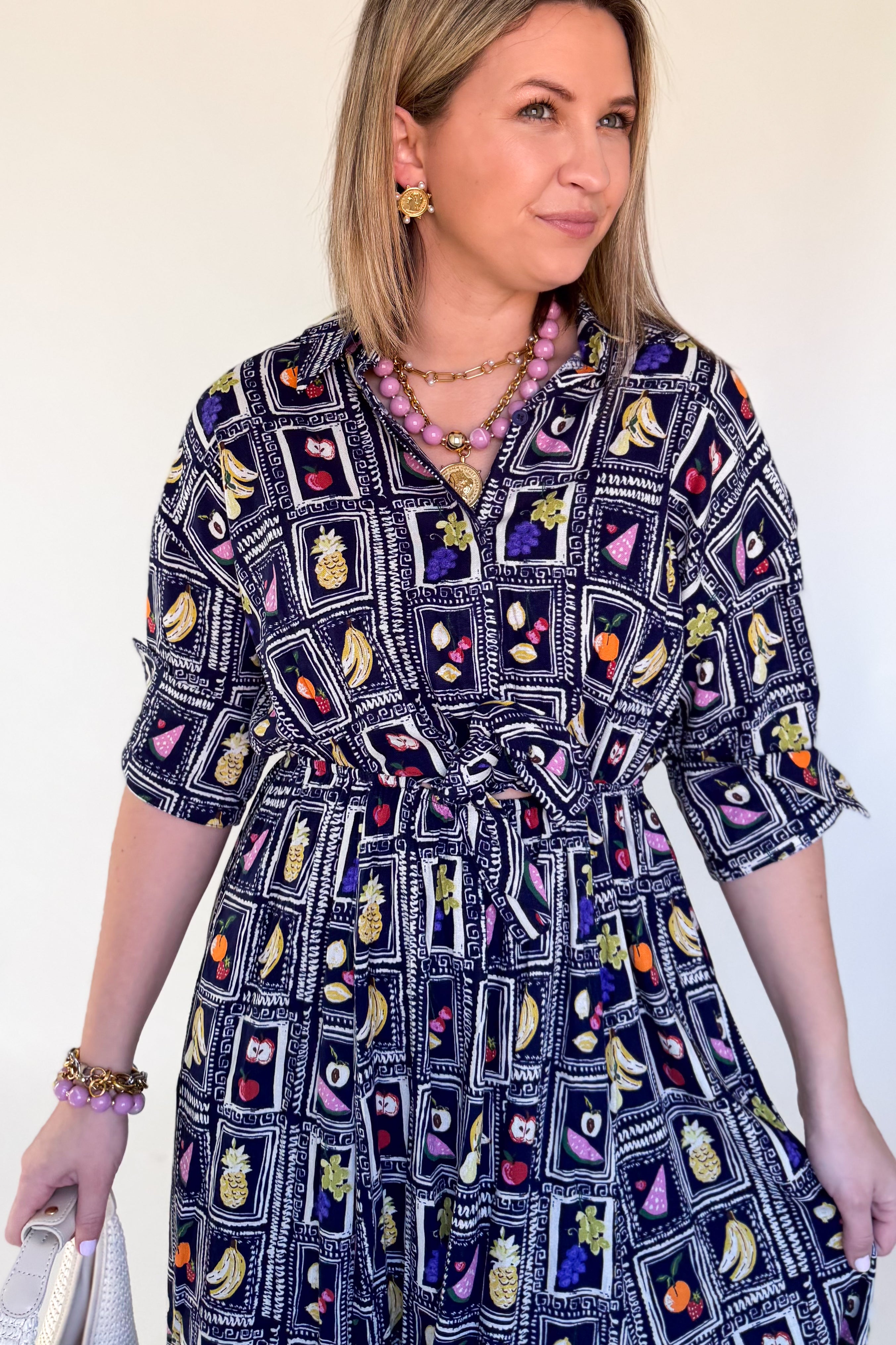 Italian Fruit Shirt Dress Maxi By Karlie