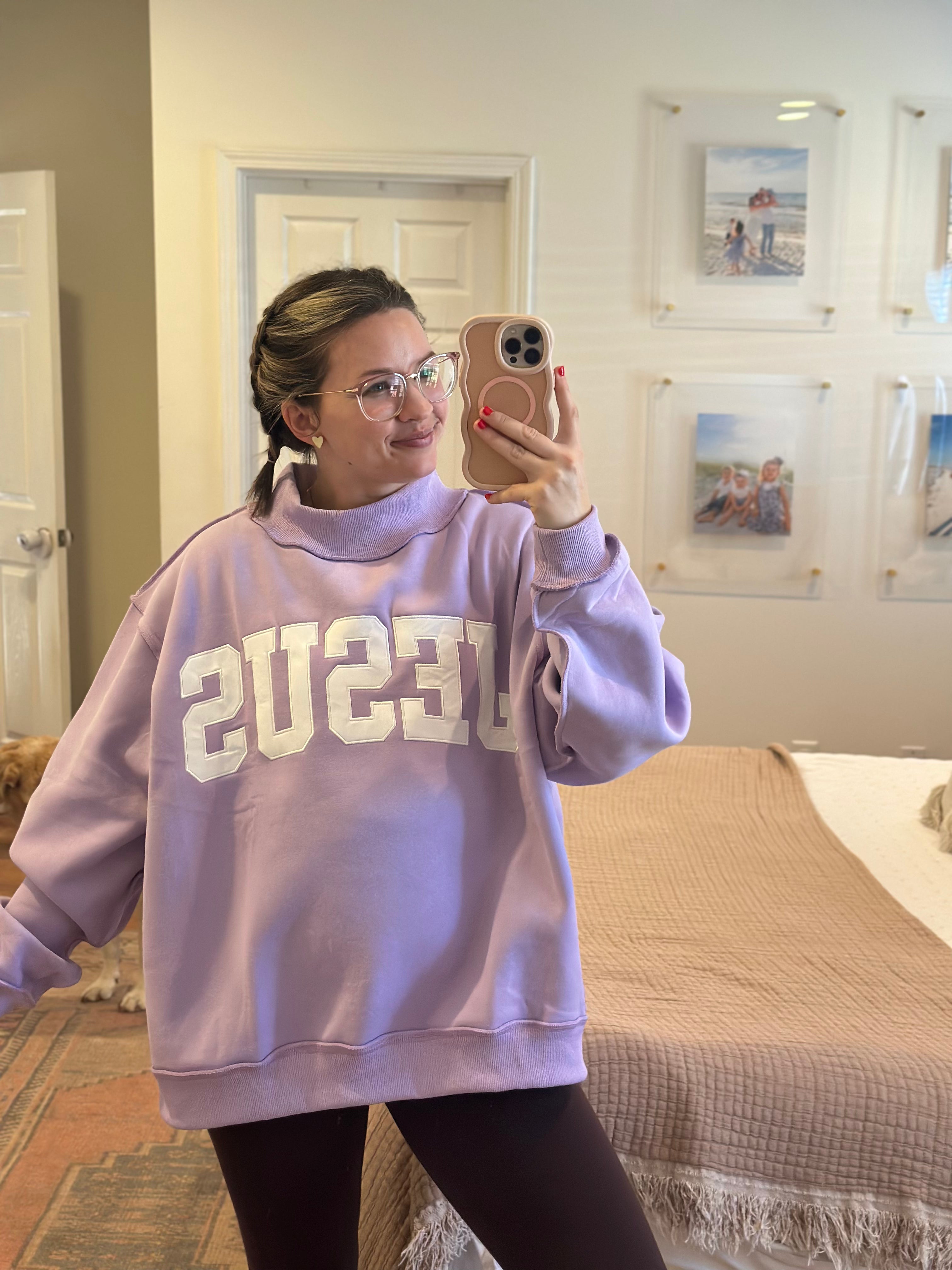 Jesus Embroidered Mock Sweatshirt