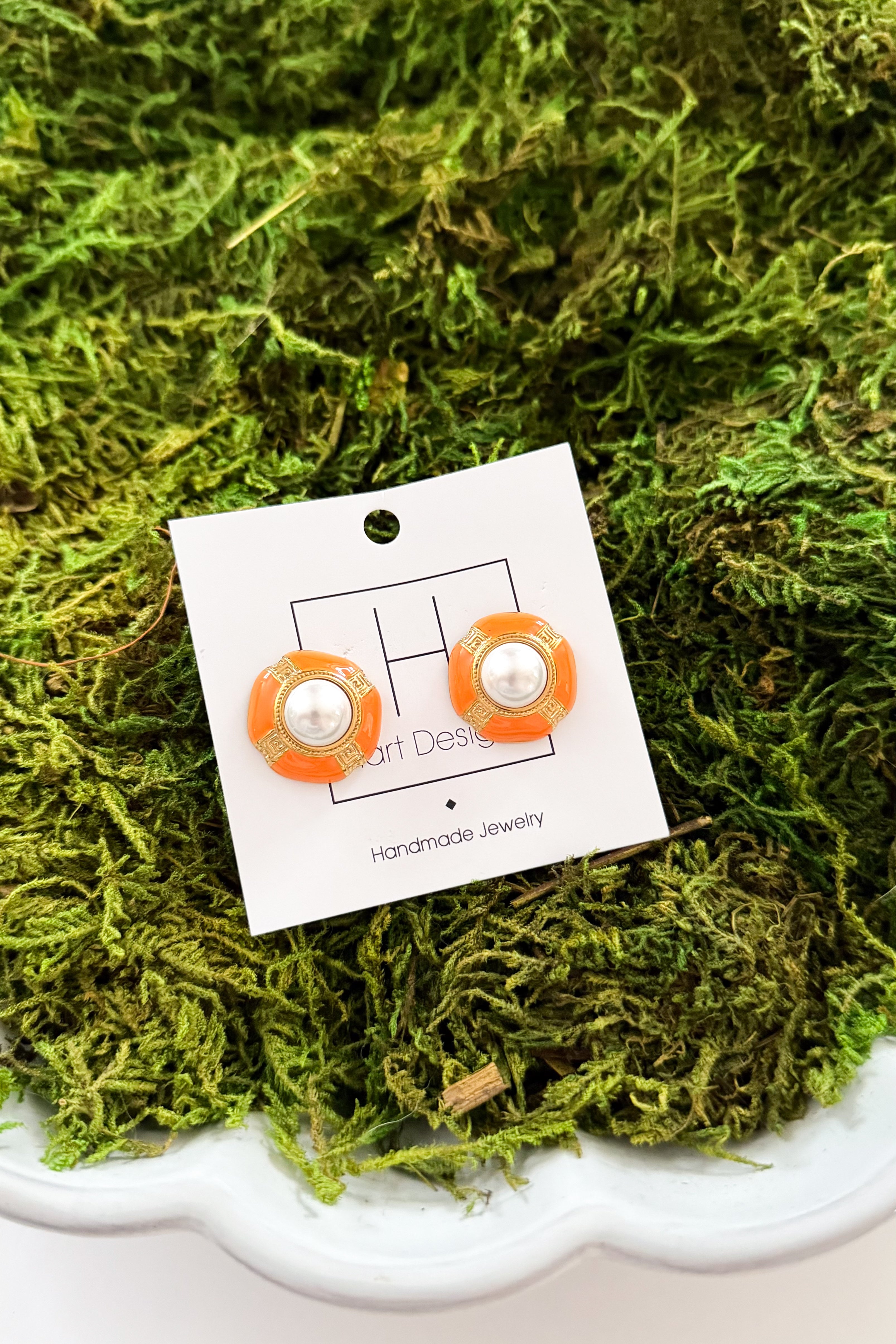 Orange + Pearl Circle Studs
