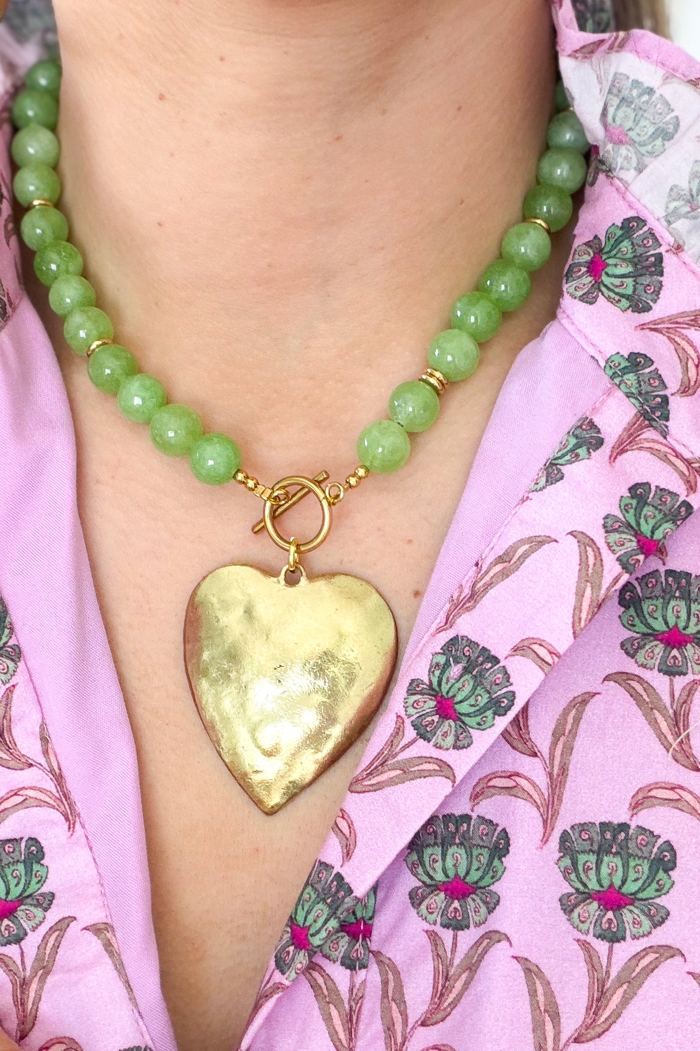 Lime Beaded Heart Necklace
