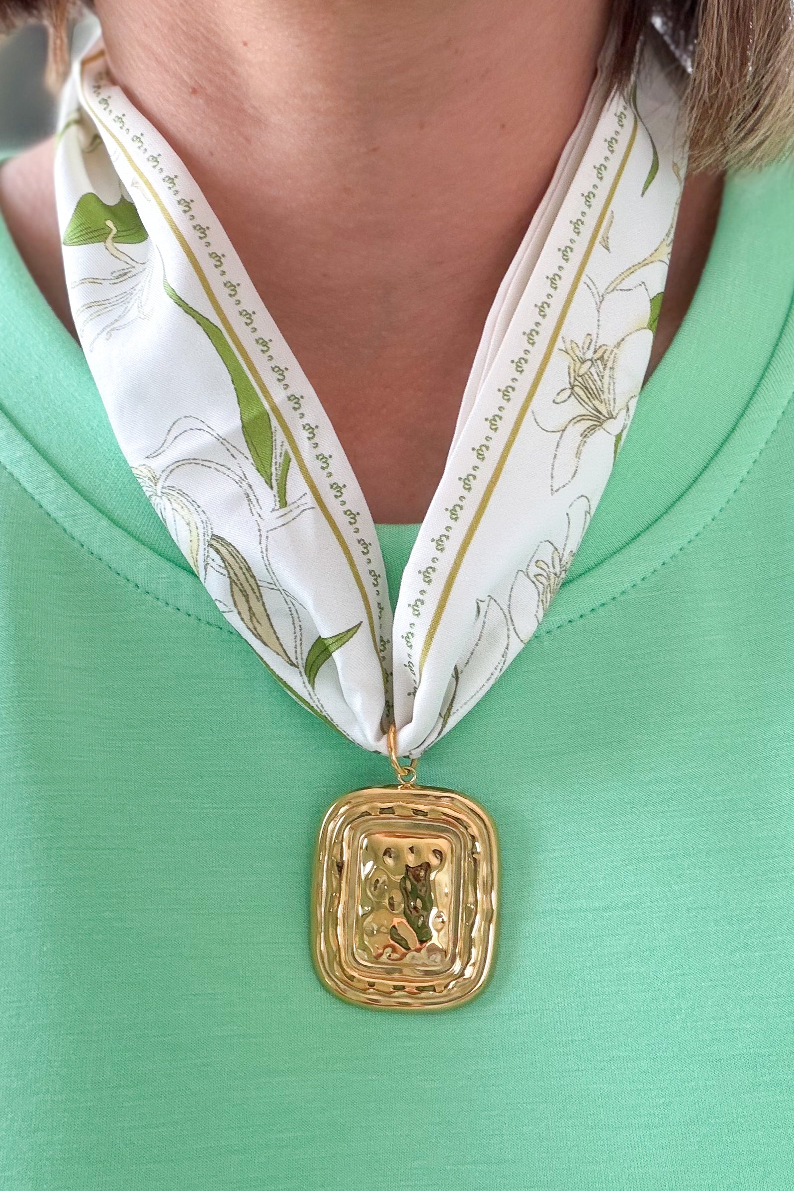 Green Floral Scarf Necklace