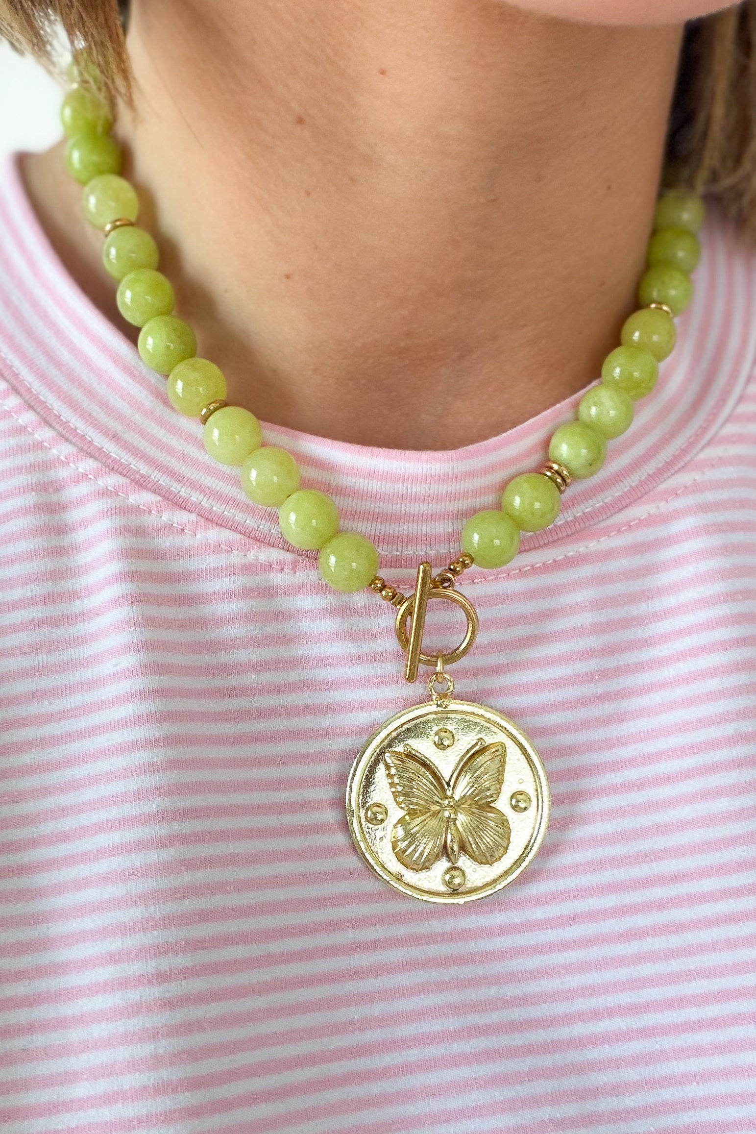 Lime Beaded Butterfly Necklace