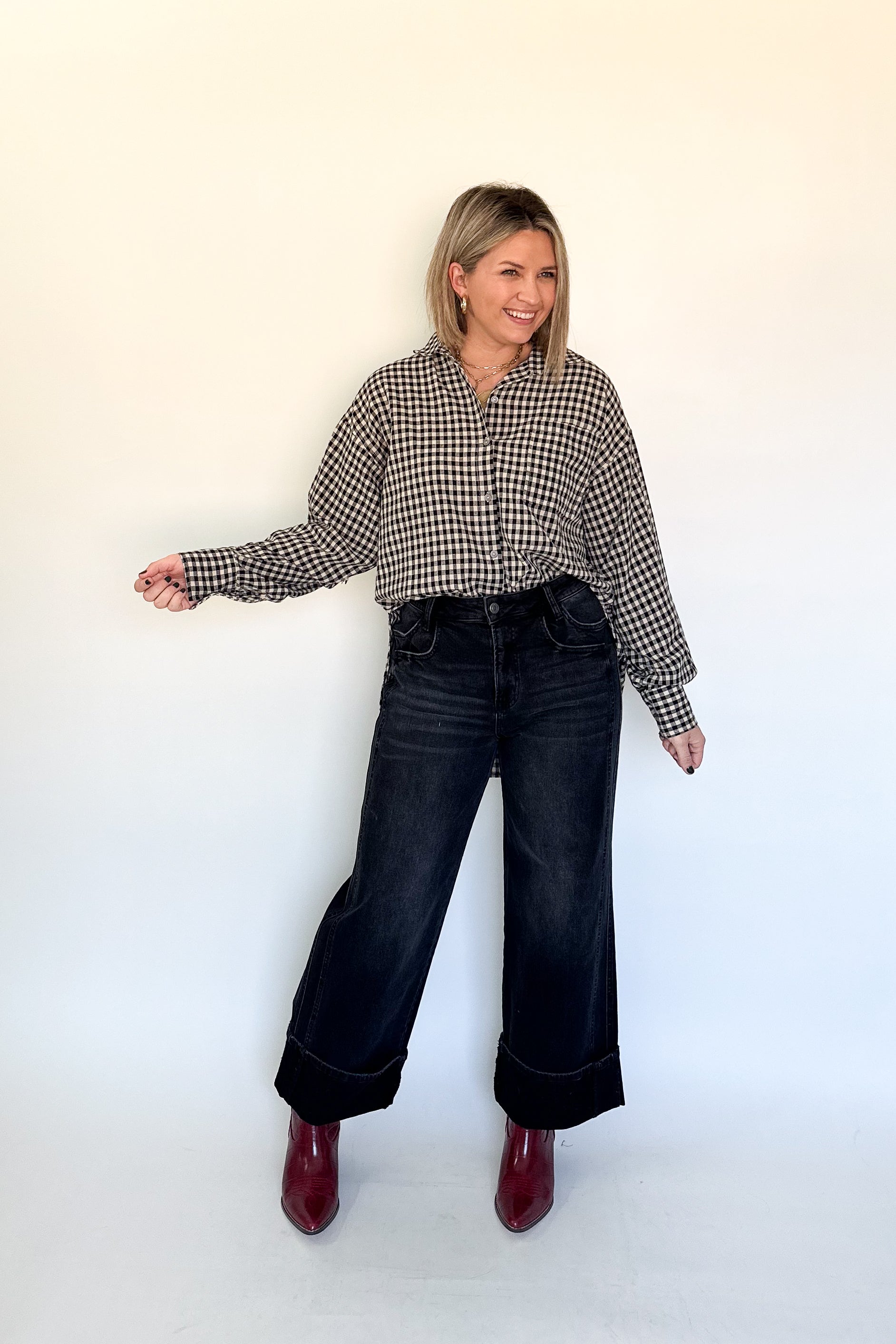 Effortless in Plaid Top